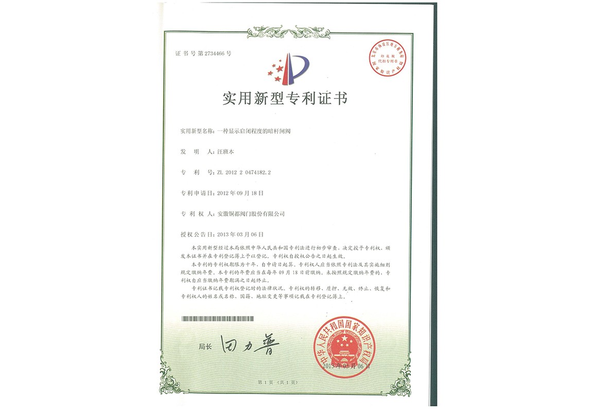 您當前的位置: 首頁 > 走進我們 > 榮譽資質 > 專利證書