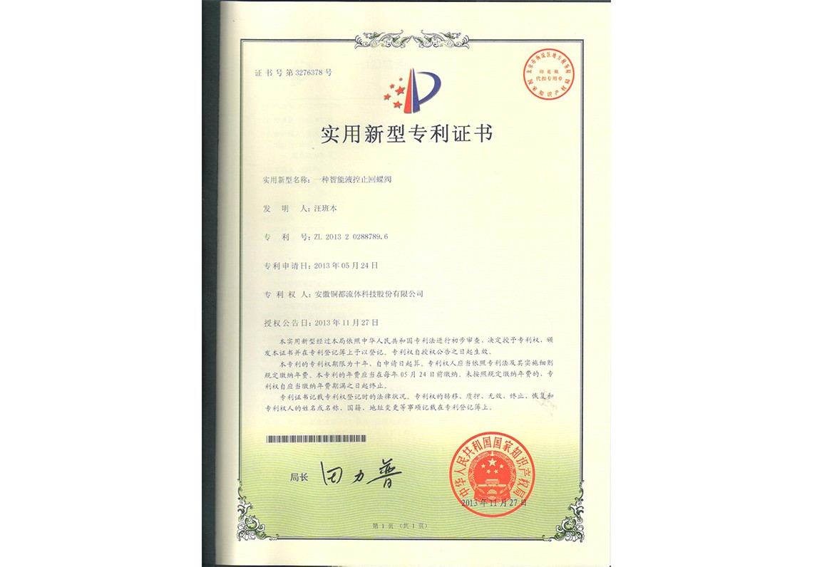 您當前的位置: 首頁 > 走進我們 > 榮譽資質 > 專利證書