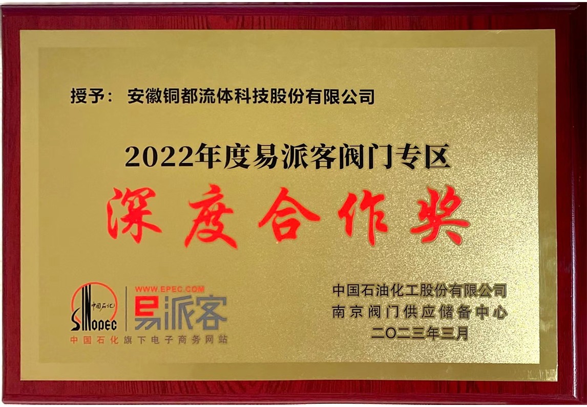2022年度易派客閥門專區深度合作獎