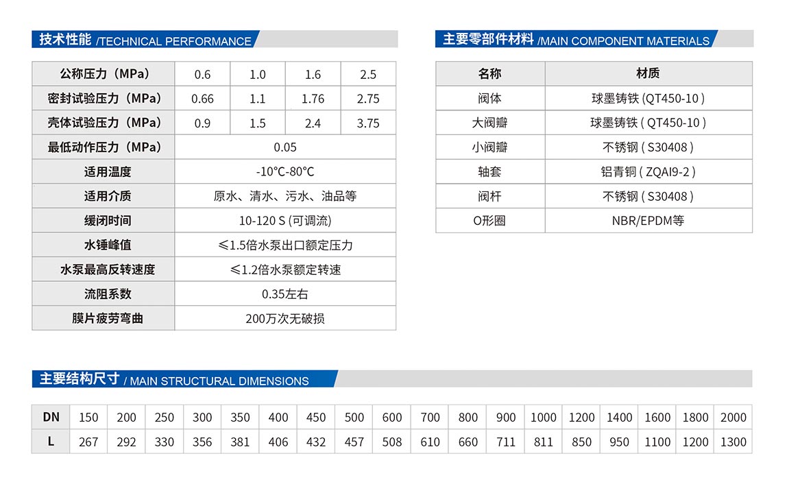 4、安裝在水泵出口管道上,具有關閥啟泵、關閥停泵(停泵無水錘)、非人為意外停泵時防止水錘破壞等功能,關閉時間可調。