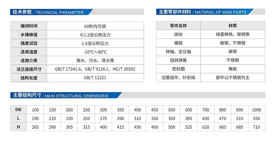 3、通過閥體兩側的活塞及控制活塞的油壓系統達到緩閉作用,噪聲小。